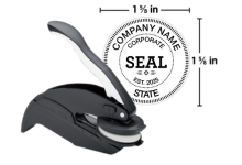 The Ideal 2 in 1 Pocket & Desk Embosser is highly popular for its versatile functionality and superior quality. It features a sleek black body with a silver metal ergonomic handle accented in black. Use it conveniently on your desk or comfortably in your hand for all your embossing needs.
